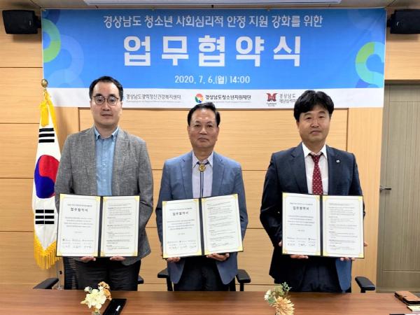 경상남도청소년지원재단(원장 차윤재)은 지난 6일 사회심리적 안정지원 강화를 위해 경남도광역정신건강복지센터 및 경남도재난심리회복지원센터(대한적십자사 경남지사)와 업무협약을 체결했다고 밝혔다.