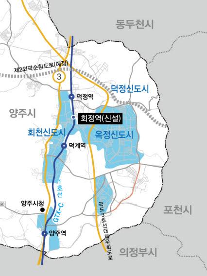 지난해 12월 20일 국토교통부 승인을 확정받은 ‘회정역’은 양주시 덕계역과 덕정역 사이에 신설하는 역으로 양주신도시 회천지구 등 향후 시 인구 증가에 따른 교통복지 서비스의 안정적인 제공을 위한 사업이다.