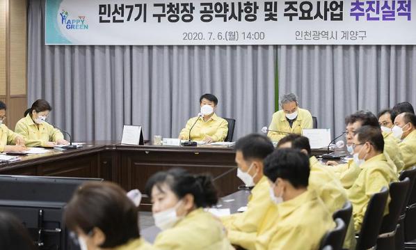 인천 계양구는 6일 구청 영상회의실에서 박형우 계양구청장을 비롯한 간부 공무원 20여명이 참석한 가운데 “민선 7기 공약사항 및 2020년도 주요사업 추진실적 보고회”를 가졌다.