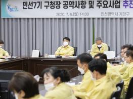 민선 7기 2주년을 맞이하여 구청장이 공약한 교육문화, 안전, 지역경제, 보건복지, 환경주거, 소통참여 6개 분야의 20개 사업과 2020년도 주요사업 23개 사업에 대하여 추진실적을 보고하고 향후 추진 계획 및 발전방향 등을 논의하는 자리를 마련하다. 이번 보고회는 코로나19로 인하여 구민의 생활과 밀접한 사업을 중심으로 간소하게 진행하였다.