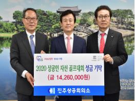 진주시복지재단은 8일 오후 4시 30분 진주시청 기업인의 방에서 진주상공회의소(회장 금대호)로 부터 ‘2020년 상공인 자선 골프대회’ 수익금으로 마련한 성금 1426만원 기탁식을 가졌다.
