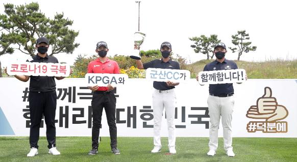포토콜에 참여한 4명의 선수들은 신종 코로나바이러스 감염증(코로나19) 극복을 위해 애쓰는 의료진에게 감사를 표현하며 “코로나19 극복 KPGA와 군산CC가 함께합니다!”라는 문구를 들고 ‘KPGA 군산CC 오픈’의 성공적인 개최를 기원했다.