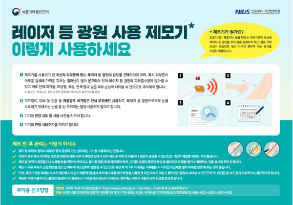 식약처는 해외 구매대행?직구를 통해 구입하는 레이저제모 의료기기의 효능은 검증된 바 없다고 밝히고, 제모 또는 피부질환 치료 등의 목적으로 제품을 구매할 경우에는 ‘의료기기’ 해당 여부를 확인할 것을 당부하였습니다.