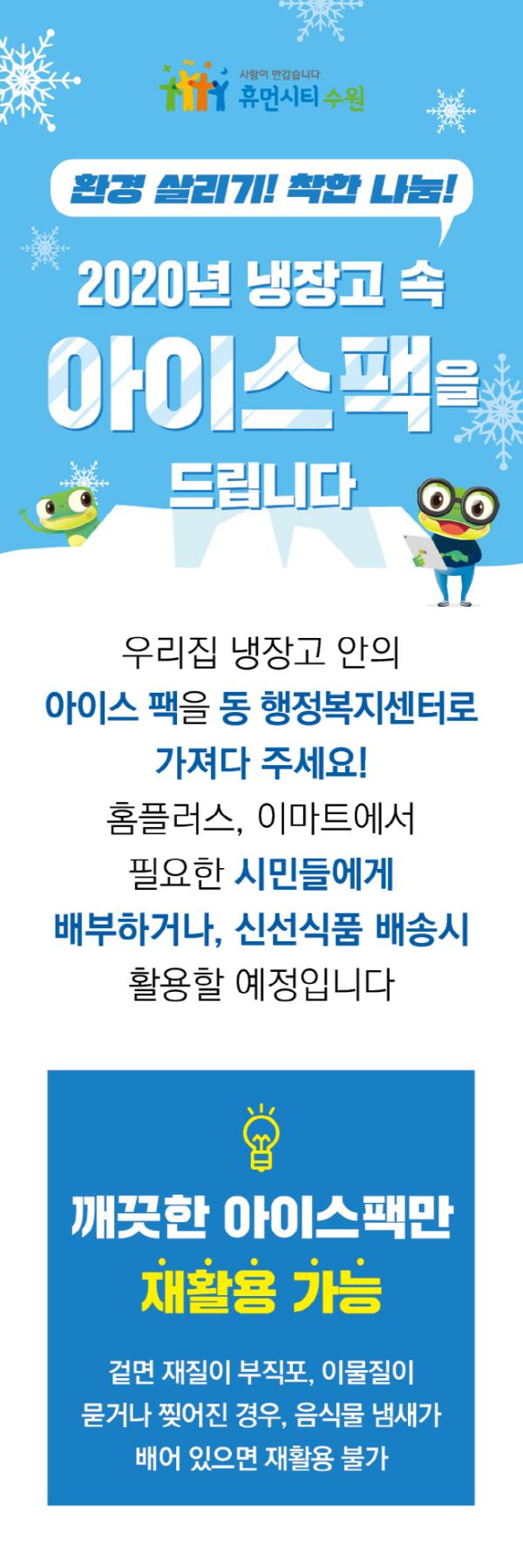 수원시가 2019년 여름 전개해 호응을 얻었던 ‘재활용 아이스팩 나눔 사업’을 확대한다.