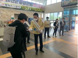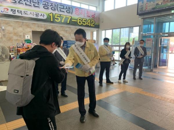 한동안 주춤했던 국내 코로나19 확진자가 타 지자체와 비수도권에서 확산 조짐을 보이고 있는 가운데, 평택시 안중출장소(소장 유인록)는 9일 안중시외버스터미널에서 코로나19 확산방지를 위한 ‘사회적 거리두기 및 방역수칙 실천하기’ 캠페인을 실시했다.