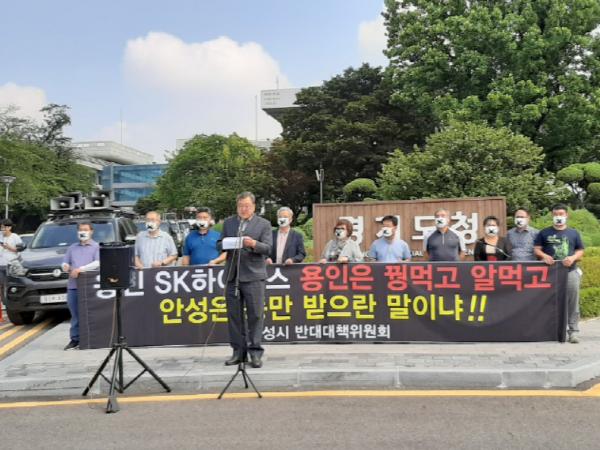 SK 용인반도체산단 안성시 반대대책위원회는 오는 9일 경기도청 정문 앞에서 주민 20여명이 참석한 가운데 기자회견을 가졌다.
