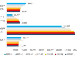 그렇다면 이천시 인구는 2000년에서 2020년 (5월기준)까지 어떻게 변화했을까?