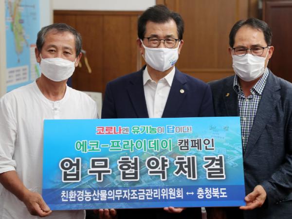 충북도는 9일 충북도지사 집무실에서 친환경농산물의무자조금관리위원회(이하 ‘친환경자조금’)와 친환경농산물 소비활성화와 친환경농업 가치 확산을 위한 ‘에코-프라이데이(Eco-Friday)’캠페인 업무협약을 체결했다.