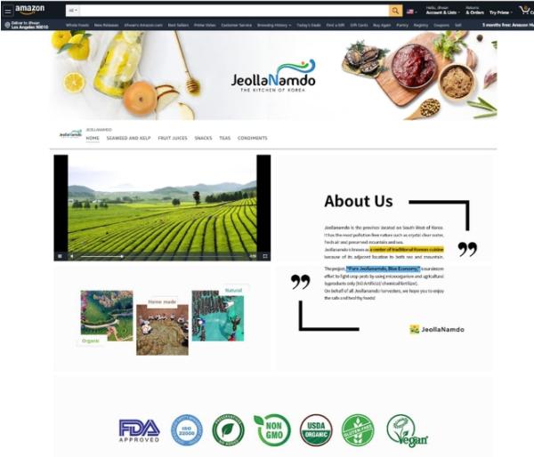 전라남도는 최근 세계 최대 온라인 전자상거래 플랫폼인 미국 ‘아마존’에 지방자치단체 최초로 지역 농수산식품을 전문으로 판매할 ‘전라남도 브랜드관’을 개장했다.