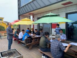 이날 월례회의는 기존 미조면 행정복지센터 2층 회의실에서 진행하는 것과는 달리 다이어트 보물섬 조성사업이 추진되고 있는 조도 큰섬에서 열렸다.