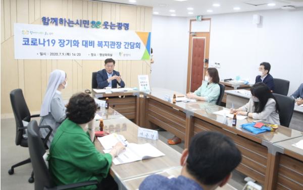 광명시는 9일 시청 영상회의실에서 관내 6개 복지관 관장과 간담회를 개최했다.