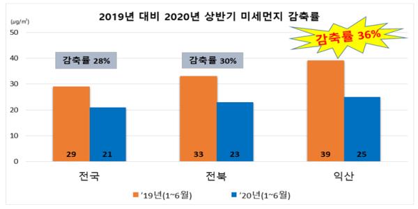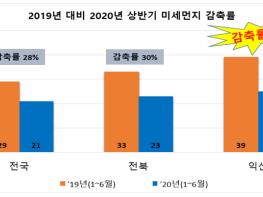 코로나19의 영향으로 전국 평균 초미세먼지 농도가 작년 대비 28% 감축되었고 전북 지역도 30% 감축률을 보이는 가운데, 익산시가 36%를 감축하여 전국·전북 평균을 훨씬 웃도는 결과를 달성했다.