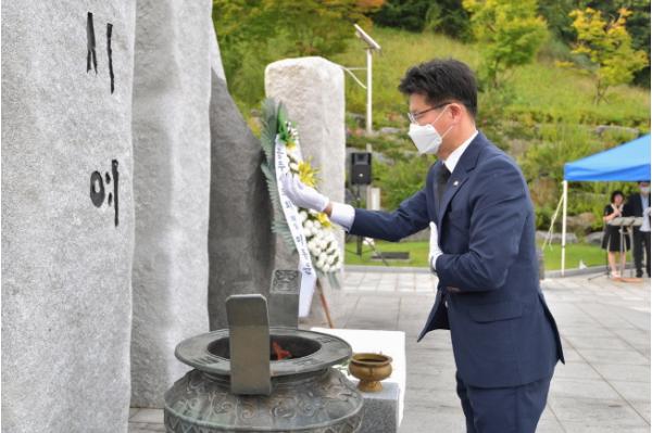 이날 참배는 코로나19 예방을 위해 김정섭 시장과 이종운 공주시의회 의장 및 시의원, 관내 9개 보훈단체장 등이 참석한 가운데 간소하게 진행됐다.