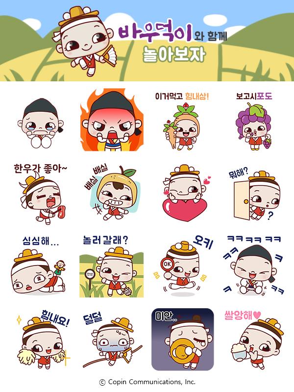 바우덕이 이모티콘 증정 이벤트는 14일부터 28일까지 14일간 진행될 계획이며, 기존 플러스 친구와 신규로 플러스 친구를 맺은 친구를 대상으로 안성의 귀여운 마스코트인 바우덕이 이모티콘을 무료로 배포한다.