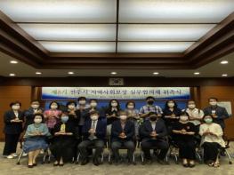 전주시 지역사회보장협의체(공동위원장 김승수·박주종)는 14일 시청 4층 회의실에서 실무협의체 위원 및 관계자 30여 명이 참석한 가운데 ‘제8기 지역사회보장 실무협의체 위원 위촉식’을 갖고 첫 회의를 실시했다.