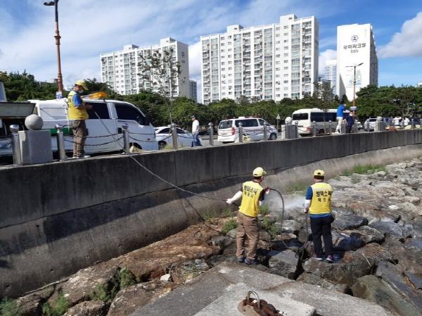 차량 및 인력 방역에 총 32명을 투입해 수변공원에서 평화광장, 갓바위 일원 해안가를 집중적인 살충·살균 방역 실시하고 있다.
