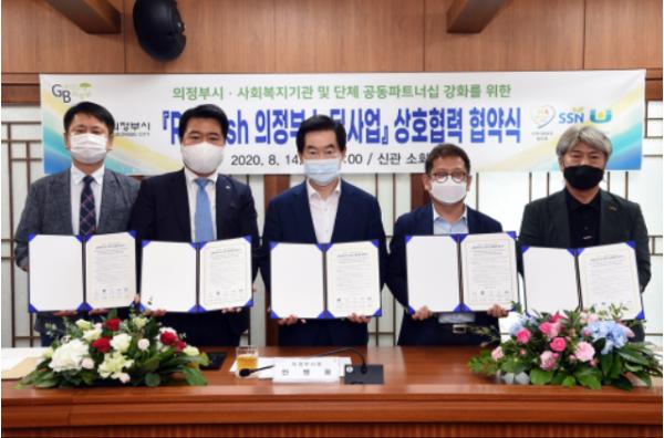 의정부시(시장 안병용)는 8월 14일 의정부시와 사회복지기관·단체 간 복지분야 의정부 뉴딜 사업 성공 추진을 위한 상호협력 협약식을 가졌다.