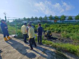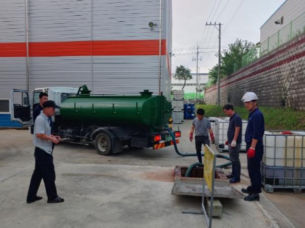 14일 오전 9시경, 수거차량을 동원하여 저류지 내 잔여 오염물질 및 오염된 토양 등을 수거·처리 완료하였으며 만일의 사태를 대비하여 인근 소하천 하천수를 채수하여 수질검사를 의뢰한 상태이다.