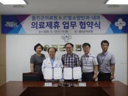 울진군의료원(원장 심재욱)과 서울소재 JC빛소망안과(원장 최경배)는 지난 12일 의료진 교류 및 상호협력 체계 구축을 통한 지역민의 건강증진을 위한 의료제휴 협약을 체결하였다.