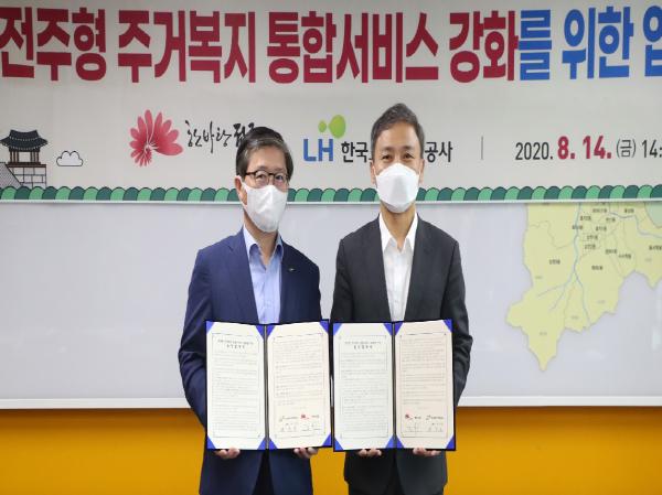 전주시와 한국토지주택공사(LH)는 취약계층을 위한 촘촘한 주거안전망을 구축하기 위해 이 같은 내용을 골자로 ‘전주형 주거복지 통합서비스를 강화하기 위한 업무협약’을 체결했다. 이날 협약식에는 김승수 전주시장과 변창흠 한국토지주택공사 사장, 조준배 지역재생총괄계획가 등 20여 명이 참석했다.