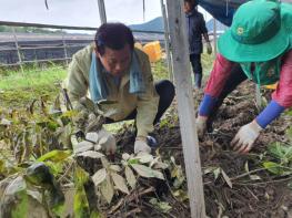 이 날 봉사활동을 버린 인삼밭은 4년근으로 내 후년에 수확을 앞두고 있었으나 이번 용담댐 방류로 2일동안 물에 잠겨 농산물의 60~70%가 상한 상태여서 긴급하게 수확하게 된 것이다.