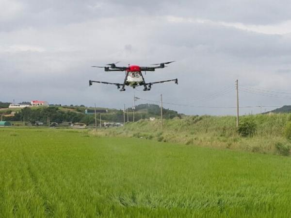 드론은 볍씨를 직접 파종하고, 비료와 제초제 살포부터 병해충 방제까지 다양하게 활용할 수 있으며, 방제인력을 80%이상 줄여 영농비 부담을 덜어 주고 농약 안전사고 예방에도 효과가 있어 농가에 큰 호응을 얻고 있다.