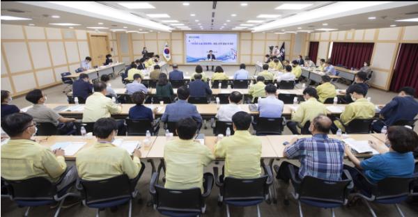 구미시(시장 장세용)은 한국판 뉴딜에 선제적 전략 수립을 위해 8. 14일 시청3층 상황실에서 전부서장이 참석한 가운데「한국판 뉴딜 종합계획 대응 시책 발굴 보고회」를 개최하였다.