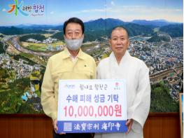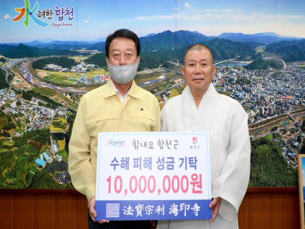 지난 14일 대한불교조계종 해인사(주지 현응)는 힘든 시기를 겪고 있는 수해민에 써달라며 해인사 총무국장 진각스님이 합천군에 긴급수해복구 성금 1천만원을 기탁했다.