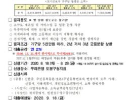도봉구(구청장 이동진)는 8월 18일부터 코로나19로 소규모 사업운영과 생계에 어려움을 겪고 있는 저소득주민을 위해 무이자 융자 지원을 실시한다.