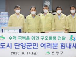 은평구(구청장 김미경)는 지난 14일 집중호우로 인해 수해를 입은 자매도시인 충청북도 단양군을 방문해 응원 메시지와 함께 구호 물품을 전달했다.
