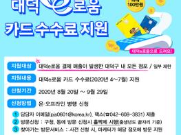 신청은 오는 20일부터 9월 29일까지, 대덕구 내 동행정복지센터와 구청, 이메일, 팩스 등으로 가능하며 찾아가는 방문 신청도 진행할 예정이다. 편의를 위해 신청서류는 신청서 1장으로 간소화했으며, 수수료 지급은 소상공인 명의의 대덕e로움 카드로 충전해준다. 대덕e로움 카드가 없는 소상공인의 경우, 수수료를 신청하면서 카드를 즉시 발급받을 수 있다.