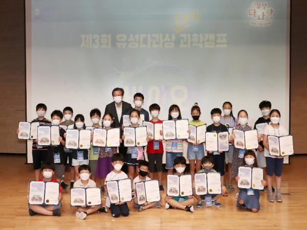 대전 유성구(구청장 정용래)는 지난 15일 유성구 청소년수련관 누리홀에서 ‘제3회 유성다과상 과학캠프’수료식을 개최했다고 밝혔다.