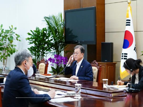문재인 대통령은 「스콧 모리슨」 호주 총리의 요청으로 14일 오후 3시부터 35분간 전화 통화를 했다. 지난 4월7일 이후 약 4개월 만에 통화이다.