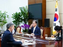 문 대통령은 “좋은 평가 감사하다”면서 “아직도 산발적인 감염이 발생하고 있어 긴장을 늦추지 않고 있다”고 밝혔다.