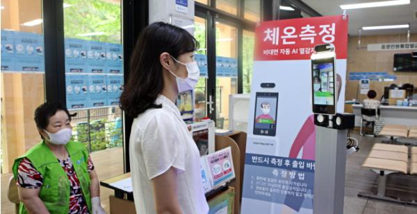 동작구(구청장 이창우)가 사회적 거리두기 2단계 격상에 따라 많은 주민들이 방문하는 동 주민센터에 비접촉식 안면인식 체온측정 카메라 설치를 완료했다고 밝혔다.