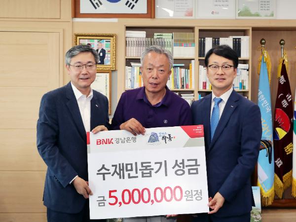 또한 같은 날 진주 소재 (주)석광ITS 석재수 대표가 군수 집무실을 방문해 피해 상인 및 주민들에게 위로를 전하며 수재의연금 500만원을 내놨다.