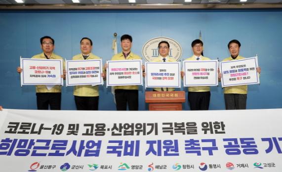 창원시는 국비 135억원과 시비 15억원을 포함한 150억원 규모로, 지난해 진해구 고용위기지역으로 지원받은 1차 희망근로지원 사업비와 유사하다. 그간 허성무 시장은 코로나19 극복을 위해 정부 1, 2차 추경마다 국회와 중앙부처를 찾아 국비 지원을 촉구했고, 그런 노력 끝에 전 지자체에서 시행하는 희망일자리사업을 이끌어 냈다.