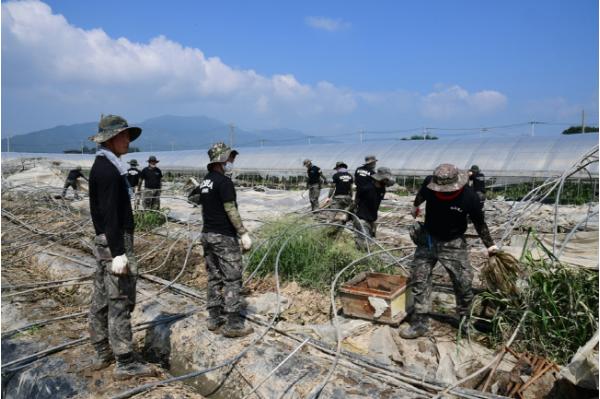 지금까지 2,700여명의 군 병력이 주택 침수 복구작업에 투입되었으며, 35사단에서는 18일에도 480여명의 군인을 투입해 마을 하우스 복구작업을 진행하였다. 경찰 인력도 의경 포함 1,185명의 인력이 투입되어 복구작업을 도왔으며, 18일부터 일 100명씩 투입되는 등 수해복구를 위해 민 관 군이 하나 되어 궂은 땀을 흘리고 있다.