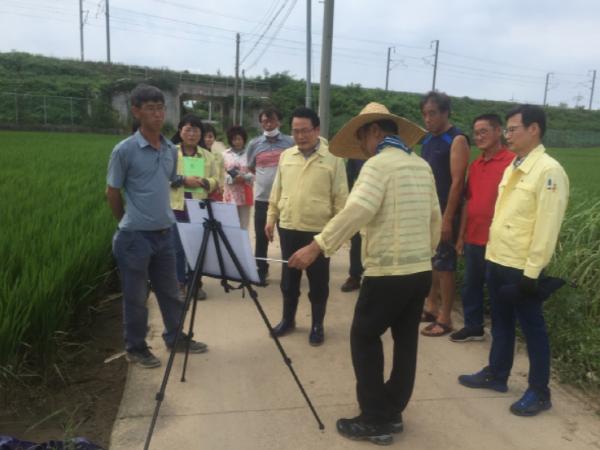 이날 방문한 농가들은 지난 7일부터 나흘 동안 이어진 집중호우로 인해 벼 이삭 출수 전 썩음 현상이 발생한 곳이다. 이 같은 현상은 벼가 장기간 빗물 속에 침관수되어 발생된다.