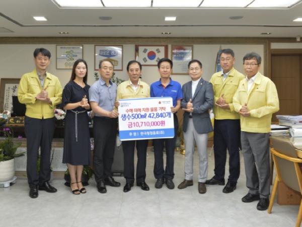 이날 기탁식에 참석한 유제휘 한국청정음료(주) 감사는 “집중호우로 수해 피해를 입은 분이나 수해 복구를 위해 애쓰는 자원봉사자 등에게 조금이나마 도움이 되었으면 좋겠다.”면서 “빠른 시일 내에 복구가 되기를 바란다.”고 소감을 밝혔다.