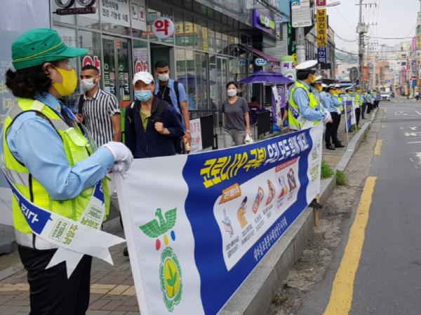 캠페인에는 새마을교통봉사대 대원 50여 명이 참여하여 보행자와 운전자들을 대상으로 ‘코로나19 극복! 우리 모두 함께해요’, ‘마스크는 내 친구’, 코로나19 감염 예방수칙 등이 적힌 현수막을 들고 홍보했다.