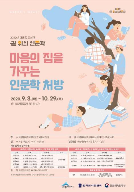 세종특별자치시 아름동도서관이 문화체육관광부가 주최하고 한국도서관협회 주관하는 ‘길 위의 인문학 공모’ 사업에 선정돼 프로그램 참여자를 모집한다.