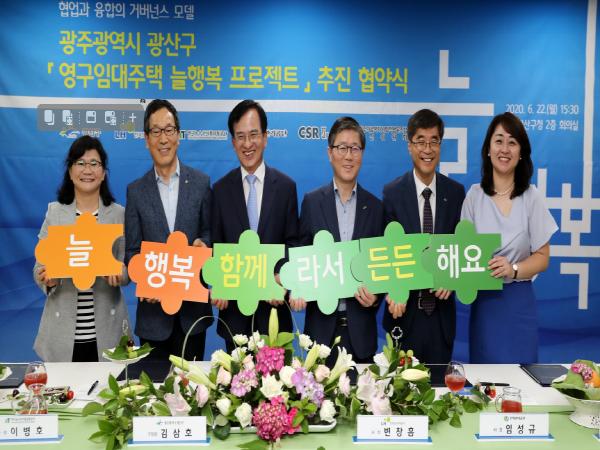 광산구는 영구임대아파트 주민의 삶의 질을 개선하는 종합 복지 계획인 늘행복 프로젝트를 위해 6월 한국토지주택공사(LH), 한국농수산식품유통공사(aT), 주택관리공단, CSR Impact, 광주의료복지사회협동조합추진위원회와 업무협약을 맺고, 복지 거버넌스를 구축했다.