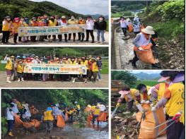 집중호우로 발생한 쓰레기가 석리천으로 유입됨에 따라 봉사자들이 긴급하게 투입되어 하천에 쌓여 있는 쓰레기를 처리하고 배수로를 정비하는 등 봉사활동에 구슬땀을 흘렸다.