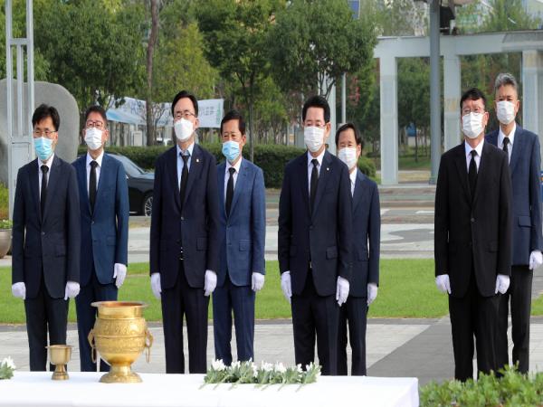 김 지사는 이날 오전 전라남도 실국장들과 함께 남악 중앙공원 김대중 대통령 동상을 찾아 참배했다.