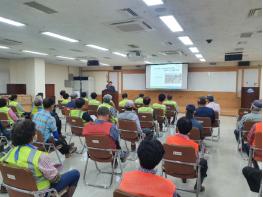 최근 오랜 장마가 끝난 후 여름철 무더위가 절정에 이르면서 야외 산림현장에서 일해야 하는 장년층 노동자들에게 생길 수 있는 열사병 등 온열질환을 예방하는 방법과 산림작업 시 사용해야하는 장비로 인한 사고를 예방하기 위한 안전관리 요령 등을 위주로 하여 교육을 진행했다.