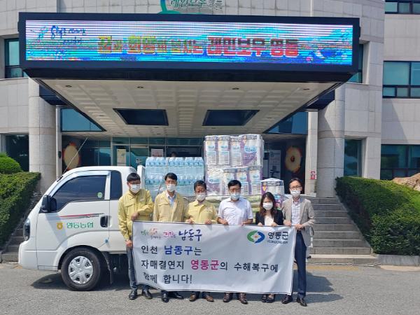 인천시 남동구(구청장 이강호)는 최근 기록적인 집중호우로 큰 수해를 입은 자매도시 충북 영동군과 음성군에 긴급 구호물품을 전달했다고 19일 밝혔다.