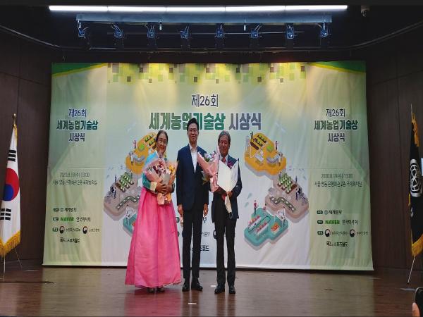 세계농업기술상은 세계일보사가 주최하고 농림축산식품부와 농촌진흥청이 공동으로 주관하는 권위 있는 상으로 우리나라 최고의 기술개발과 수출농업, 협동영농, 기관단체 등 4개 분야에서 농업발전에 공로가 큰 농업인과 단체, 기관을 표창하는 상이다.