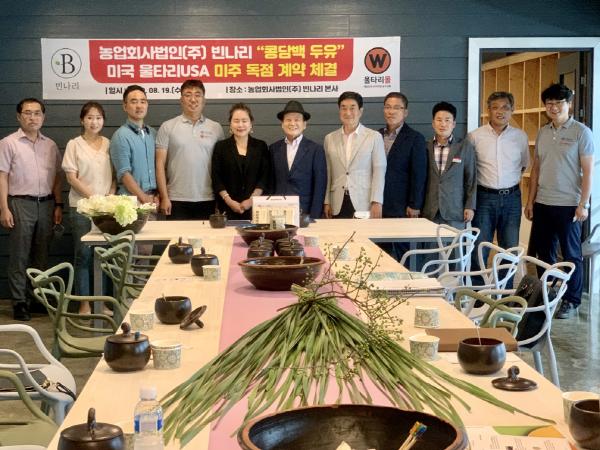 경북 영주시 소재 농업회사(주)빈나리(이하 빈나리)는 지난 19일 오후 2시 미국 LA의 울타리USA(대표 신상곤)와 부석태로 만든 콩담백두유의 미주 독점계약을 체결했다고 밝혔다.