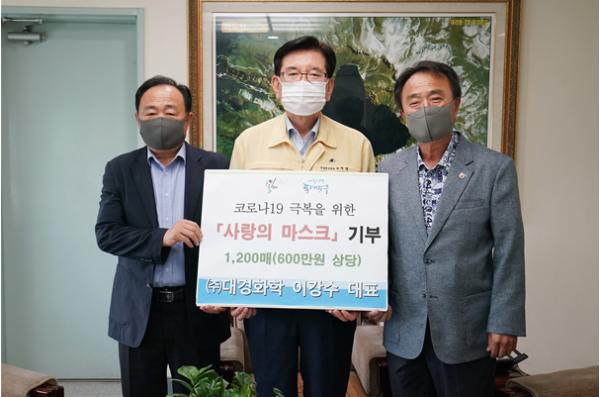 동대문구(구청장 유덕열)는 ㈜대경화학에서 코로나19 극복을 위한 사랑의 마스크 1,200매를 전달해왔다고 밝혔다.